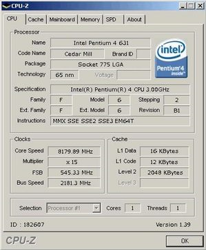 Pro představu, u základního Pentia 4 631 běží frekvence na efektivních 800MHz (tedy 4×200MHz). Nyní byla frekvence sběrnice zvýšena na neuvěřitelných 545,3MHz, tedy na efektivních 2181MHz! To je přetaktování o 173%.